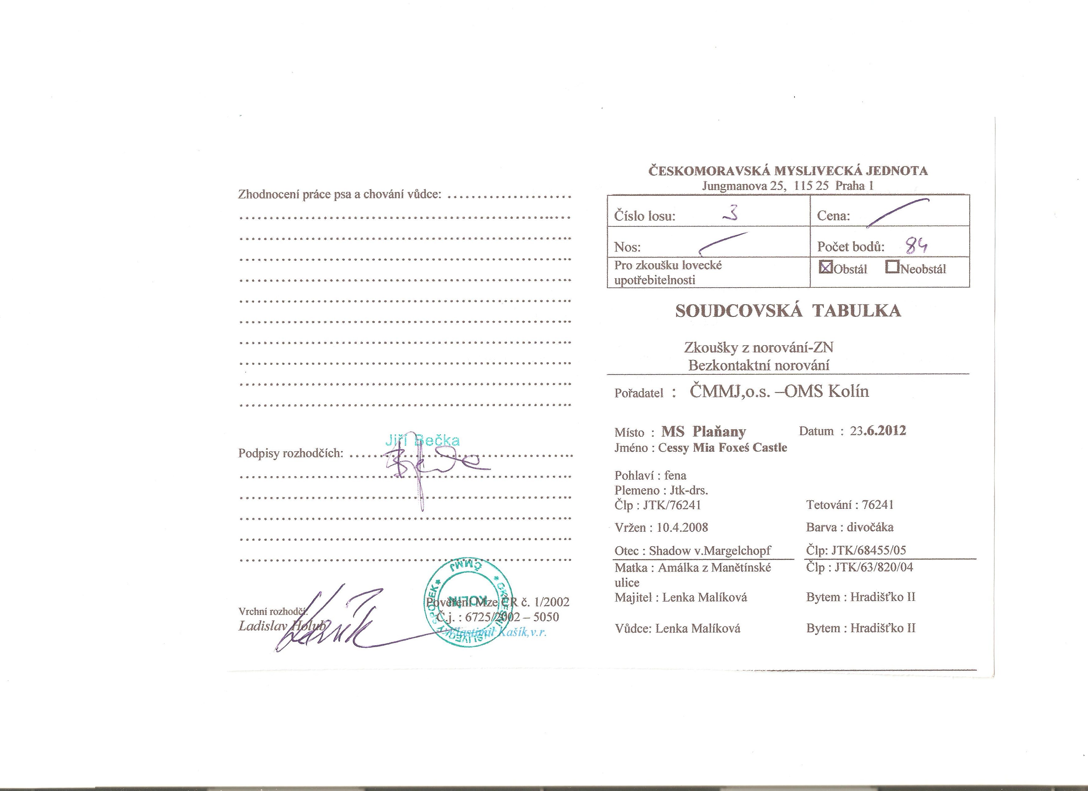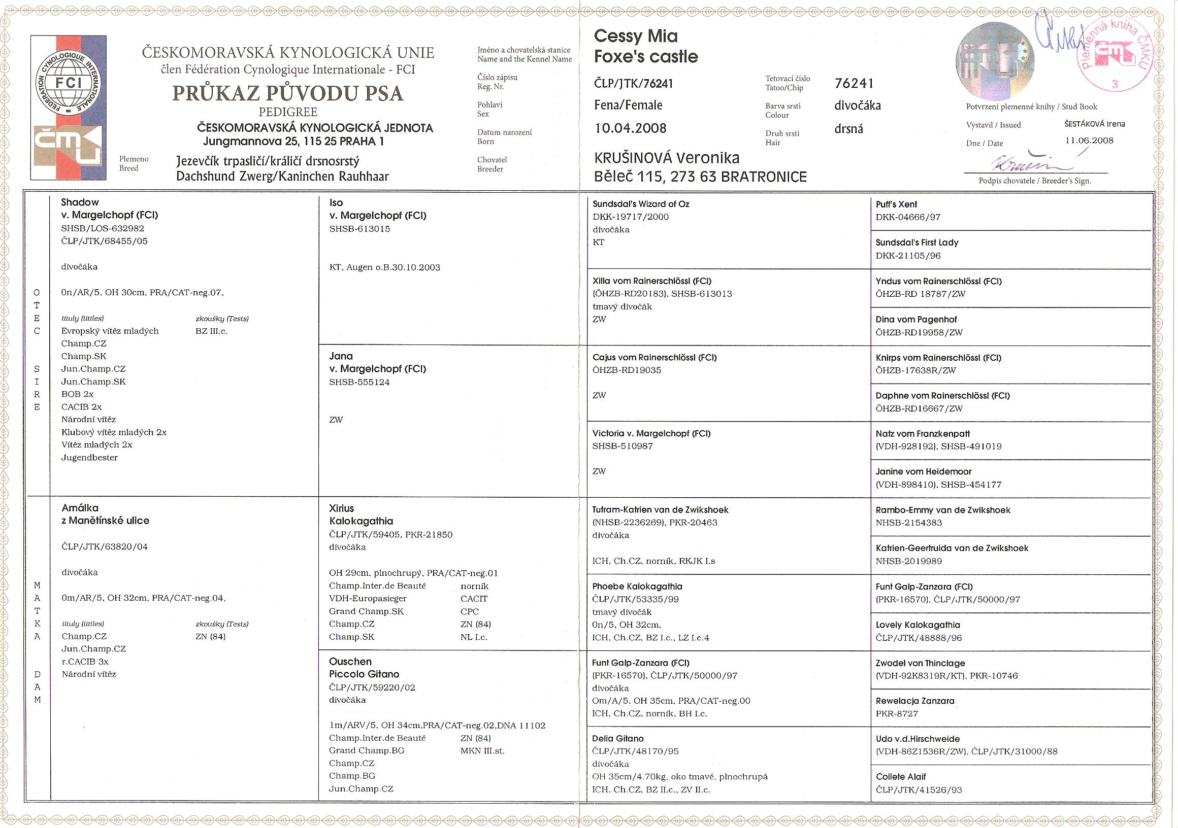 Cessy Mia Foxe´s castle (*10.04.2008) CHOVNÁ FENA